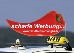 Der Taxi Dachwerbeträger "Carego-Overland" ist mit vier Saugfüssen ausgestattet und kann eine Werbetafel von ca. 1000 x 490 x 6 mm aufnehmen. Empfohlende Richtgeschwindigkeit 140 Km/h. Eine Überschreitung zwecks Überholmanöver ist unbedenklich.